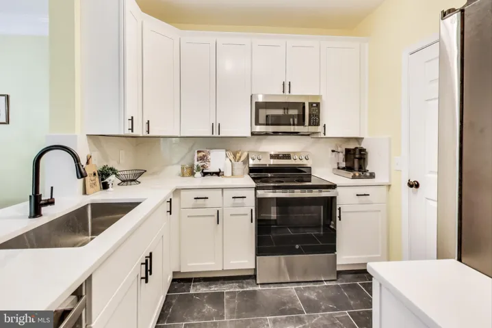 Fully redone bathrooms and kitchen – all appliances including washer and dryer are new. Attractive solid surface counters in kitchen along with tall cabinets and shelving in laundry room adjacent to kitchen provide extended storage. New gas range and French doors with bottom freezer refrigerator add to the upgraded kitchen offering.