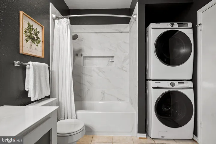 The kitchen is a true centerpiece, featuring stainless steel appliances, including a dishwasher and refrigerator added in 2021 and a new oven and microwave in 2024. Elegant Miami Vena Quartz countertops, a herringbone marble backsplash, and pull-out drawers for easy storage complete the updated design. The bathroom was renovated in 2021 and includes an upgraded vent and light system with built-in speakers for a spa-like experience. The primary suite is both functional and stylish, offering a spacious walk-in closet with refreshed shelving and a new ceiling fan, while the in-unit LG washer and dryer, also added in 2021, bring everyday convenience.