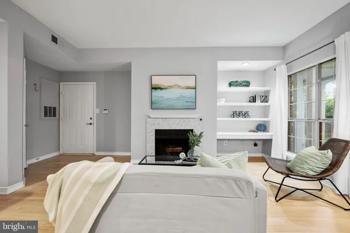 Additional improvements include a brand-new HVAC system and ductwork installed in 2024, fresh paint in 2021 with retouches in 2025, the addition of Verizon Fios fiber optic internet in 2023, and an electronic lock for secure outdoor storage. The living room, with its custom built-ins and cozy wood-burning fireplace, provides the perfect atmosphere for relaxation or entertaining.
