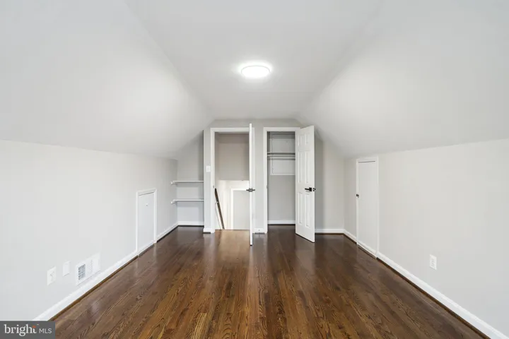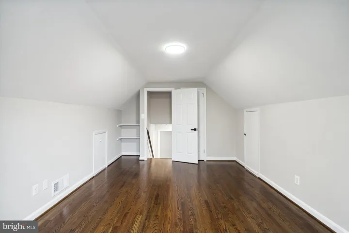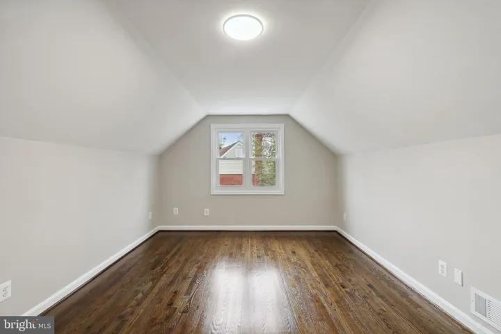 The main level showcases gleaming hardwood floors and a spacious bonus room, perfect for entertaining or relaxation. Sliding glass doors lead to a large, private backyard, providing a serene outdoor retreat. Upstairs, you’ll find two generously sized bedrooms and a fully updated bathroom, with a few additional steps leading to the expansive third bedroom that offers ample storage space.