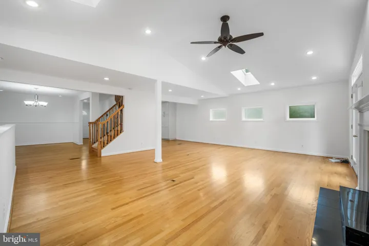 Step inside to find an open, light-filled main level where natural sunlight pours through large rear windows, illuminating rich wood floors and recessed lighting. The spacious living and dining areas flow seamlessly into the upgraded kitchen, where sleek high-end appliances, ample cabinetry, and generous counter space make meal prep a pleasure. A cozy fireplace adds warmth and character, creating the perfect centerpiece for relaxed evenings or lively gatherings.