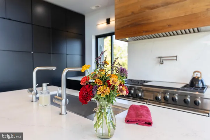 At the heart of the home is a gourmet kitchen designed for serious cooks and entertainers alike. It boasts a Wolf 60″ dual-fuel six-burner range with infrared dual griddle and pot filler, a Sub-Zero refrigerator with freezer with built-in ice maker, a Bosch dishwasher, a Kohler Stages 45″ stainless steel undermount sink SilentShield, and a pull-out corner cabinet and drawers, completing this high-end culinary space.