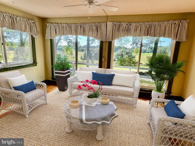 Beaconsfield, a small farm in two parcels consisting of 28 acres. a pond, and a cottage style house tucked away privately in a grove of shade trees. There are 2 bedrooms, 3 1/2 baths, 20 x 23′ great room with beamed ceiling, a stone fireplace, and a wall of beautiful reclaimed, old pine in the form of cabinets and shelves. A built-in planter and skylights complete the great room. The two bedrooms have baths ensuite, walk-in or double closets. The formal dining room has a cathedral ceiling and built-in china cabinet and large windows. The eat-in kitchen has the same old pine cabinetry and off the kitchen is a 15′ sunroom with mostly glass bringing in the surrounding countryside. There is a partial basement, partially finished with a recreation room and potential office with bath. A 28′ deck looks over the landscape. A large shed serves as storage and garage. There is a generator. Sale is contingent on a boundary line adjustment being approved for recording by Fauquier County. This is in process. Property is in the Fauquier County land use tax program. Owner to pay no rollback taxes. Please do not rely on any assessment and tax information as property has not been reassessed. This country retreat cannot be further subdivided. It is in 2 parcels – 18 acres and 10 acres – it is doubtful the 10 acre lot is buildable based on soils. See lister. Both parcels are subject to a road maintenance agreement, however there is no active committee coordinating the maintenance. Lot 5 is subject to the Beaconsfield covenants in DOCS. Verify utilities. Sold “AS IS” but buyer inspections are welcome. More land available. “Furnished virtually”