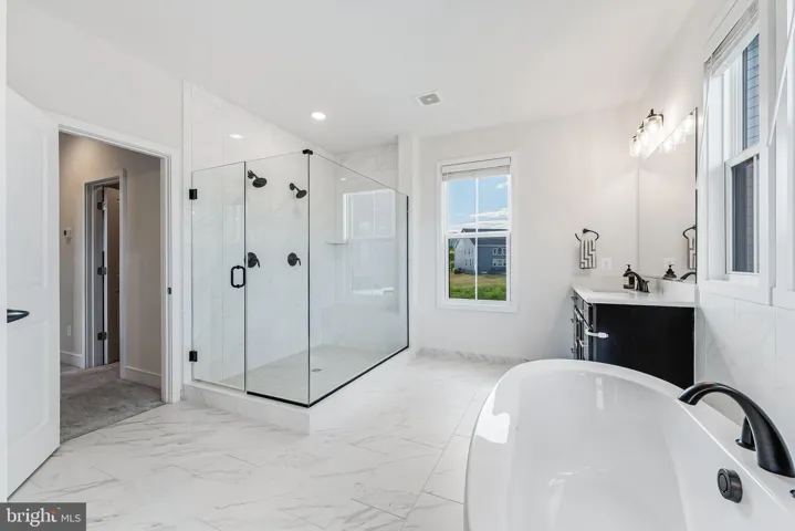 Upstairs, the luxurious primary suite offers a spacious bedroom with a sitting area, dual walk-in closets, and a spa-like bathroom complete with double sinks, an oversized shower with a bench, and a freestanding soaking tub. The bedroom level includes three full bathrooms, providing comfort and convenience for everyone in the home. One of the most inviting features of the property is the inviting front porch — a perfect spot to relax and enjoy the scenic surroundings.