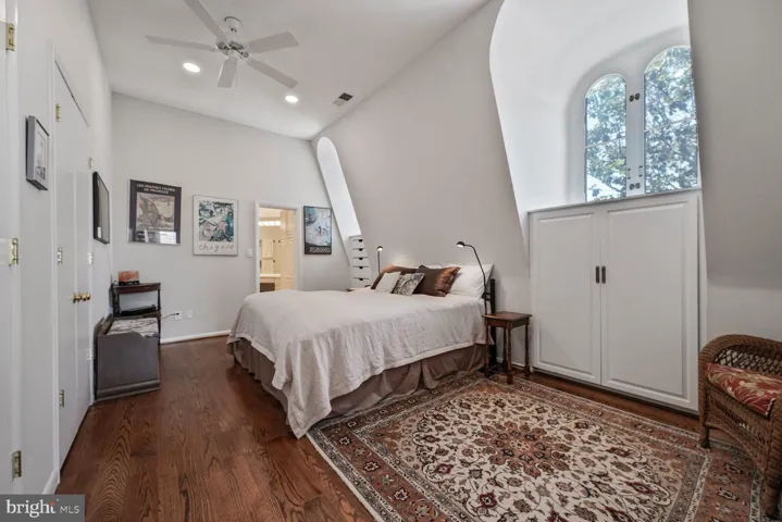 In the heart of Old Town Alexandria! Stunning 2 BR, 2 BA plus DEN top floor unit in the historic Swann Daingerfield House. Semi- private elevator (shared by only one other) welcomes you to 1755 square feet of spectacular living space, offering generous room sizes, soaring twelve- foot ceilings, sparkling hardwood floors, and incredible natural light from three separate exposures. Featuring a dramatic, oversized living room with custom built-ins, original moldings, wood burning fireplace, and a wall of east facing windows, a separate, formal dining room with fireplace and wet bar, a re-modeled granite kitchen with custom counter built-ins and huge walk-in pantry, plus a private, separate study with skylight and built-in workstation. Generous bedroom sizes with magnificent arched windows, large closets, and built-in extra storage. Interior spaces blend seamlessly with outdoor ones as kitchen opens to a brick floored balcony overlooking gorgeous courtyard and professionally landscaped gardens. Simply a wonderful blend of historical preservation, elegance, and practical, updated design. All within blocks of shops, cafes, restaurants, parks, and all that Old Town offers! Plus assigned off street parking!