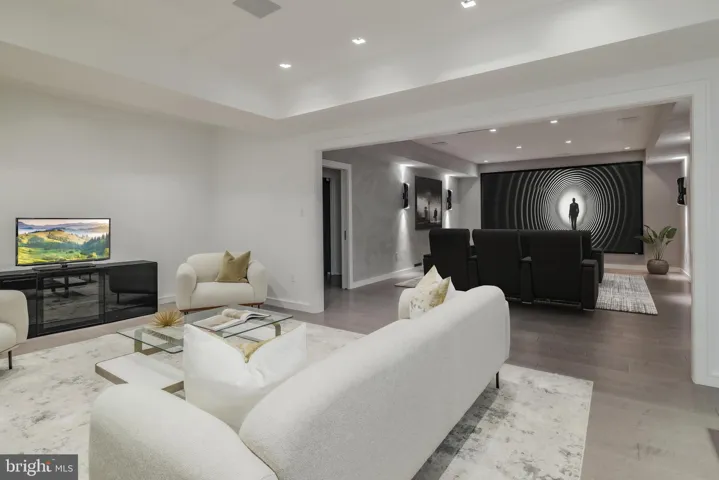 The lower level extends the home’s commitment to luxury living. Here, a private guest suite, a fully equipped fitness center with a sauna, and an entertainment wing await. A large recreation room, custom bar, and a professional home cinema ensure the space is as functional as it is indulgent. The smart home system, integrating Lutron Homeworks with Savant control, offers seamless connectivity for lighting, motorized window treatments, and whole-home audio.