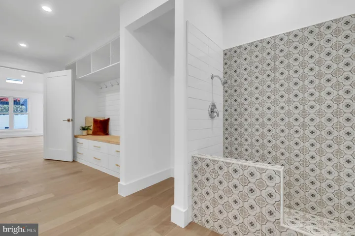 The main level also features a bedroom with an en-suite bathroom, perfect for main-level living, as well as a mudroom/laundry room with built-ins, a doggie bath, and a custom hall tree, offering convenience and organization.