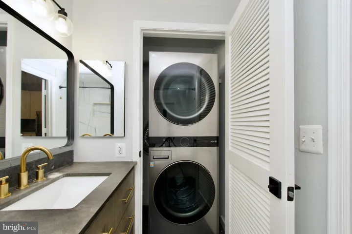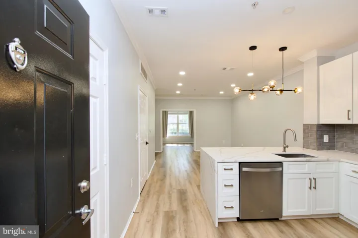 The open floor plan includes a spacious living and dining area and a recently upgraded kitchen with stainless steel appliances, quartz countertops, shaker-style cabinets, backsplash, LVP flooring, ceramic tiles, modern light fixtures, recessed lighting, and an in-unit washer and dryer.