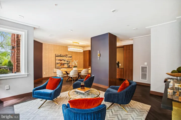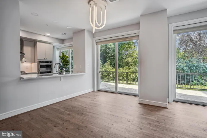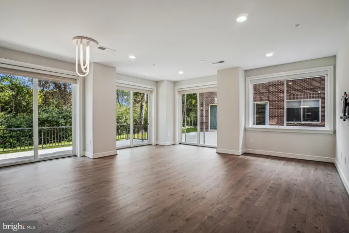 This sunny two-bedroom two-bath unit, spanning over 1,300 square feet, offers an abundance of space and luxurious living. The condo features floor-to-ceiling sliding glass doors that open to a massive private terrace, providing stunning views of the GW Trail—perfect for unwinding or entertaining.