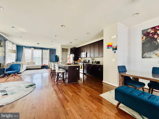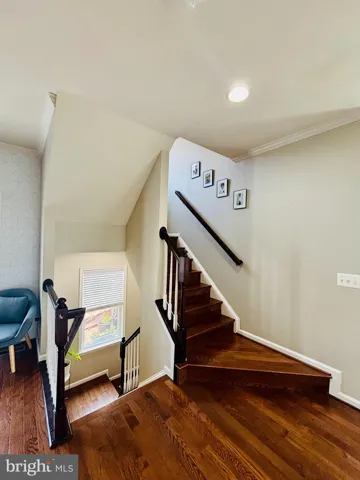 Upstairs, three spacious bedrooms with hardwood floors await. The primary suite features a walk-in closet and spa-inspired bath with dual sinks and a walk-in shower. A hall bath and laundry closet complete the upper level.