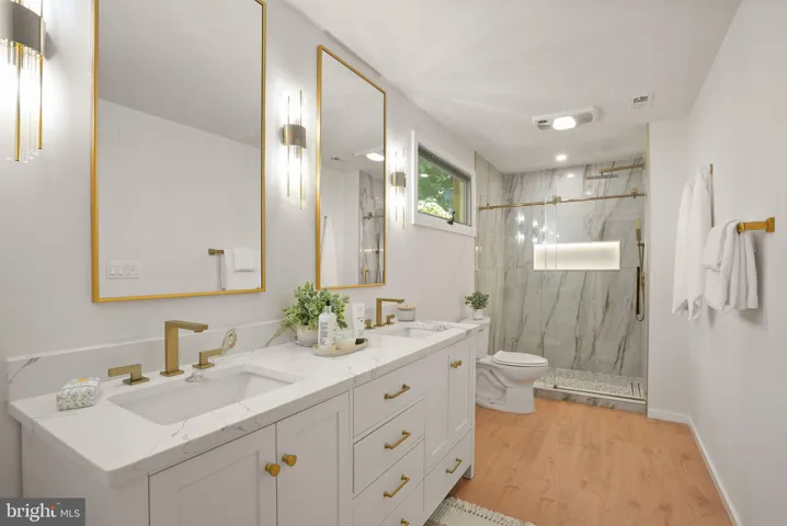 Upstairs, the luxurious primary suite offers a generous walk-in closet and a brand-new spa-inspired primary bath, with large windows offering tree-top views. The lower level—with its own entrance, sliders to the outdoors, and expansive family room—features new luxury LVP flooring and can serve as a fully independent suite for guests, multi-generational living, or an incredible home office.