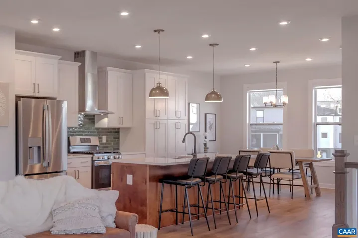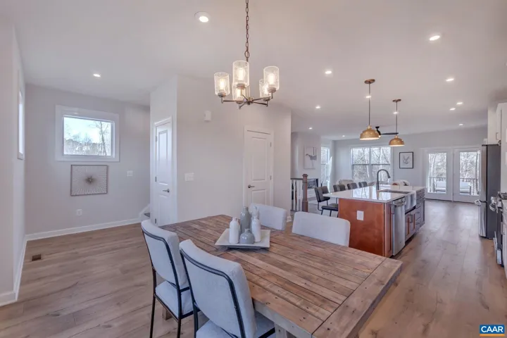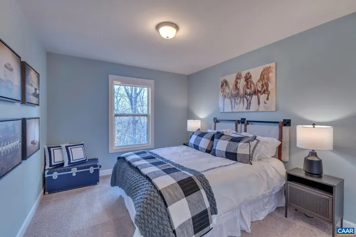 First time sale of this builder model home built in 2022. Belvedere is an established community centrally located to all things C?ville, just 2.5 miles from downtown yet surrounded by nature. The Bainbridge has a thoughtfully designed open floorplan including a galley style kitchen, oversized 9? island, & great room w/ fireplace making it perfect for entertaining. The well-appointed kitchen includes gas cooking, chimney hood, farm sink, & QUARTZ counters. An oversized TREX deck backs up to open space w/ mature trees for relaxing evenings or morning coffee. The primary suite & two additional bedrooms can be found upstairs, two full baths both w/ dual vanity sinks & side by side laundry completes this level. An attached garage, & spacious rec room/study w/ a full bath make up the entry level. Lawn care & TING fiber internet included in HOA. Pearl Certified. HERS Score 56. Actual photos.,Granite Counter,Maple Cabinets