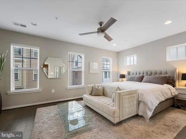 Welcome to 411 Bicksler Sq SE, a beautifully appointed Knutson built townhome offering four finished levels of modern living in a prime location. Enter at the foyer where you’ll find a versatile office/bedroom and a convenient powder bath with direct access to the two car garage. The second level features a stunning gourmet kitchen with upgraded cabinetry and hardware, KitchenAid appliances, counter-depth refrigerator, a spacious breakfast area, and an open family room with a cozy gas fireplace plus a powder bath. Upstairs, the third level hosts two generously sized bedrooms, each with its own ensuite bath, along with the laundry room for added convenience. The fourth floor is a true retreat with a large family room and a double-sided gas fireplace that warms both the interior space and the expansive terrace—perfect for entertaining. This level also includes an additional bedroom with its own ensuite bath, ideal for guests or multigenerational living.