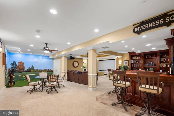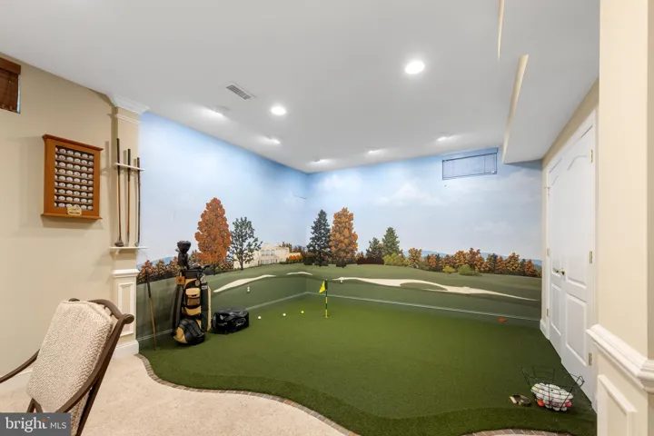 The lower level is designed for fun and entertainment—complete with a professionally installed putting green, a wet bar, and a full theater system.