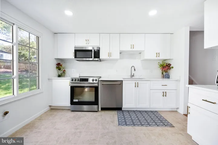 Inside, you’ll find gleaming hardwood floors, brand-new carpet, and a fully renovated kitchen (2025) with deep white cabinetry, quartz countertops, stainless steel appliances, and ceramic tile flooring with space for casual dining. Other recent upgrades include a new washer and dryer, new plumbing (including main pipes in 2024), a newer roof, siding, and A/C—big-ticket improvements already completed.