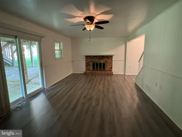 The freshly-painted interior has an open floor plan with luxury vinyl plank flooring, a living room, and a kitchen featuring granite countertops, stainless steel appliances, and a breakfast nook. The upstairs include three bedrooms and two full bathrooms, one exclusive to the Master Bedroom. The lower level features a family room with a brick fireplace, walk-out access to the backyard, a fourth bedroom, a full bath, and a utility room with washer and dryer.