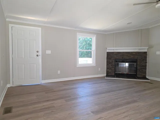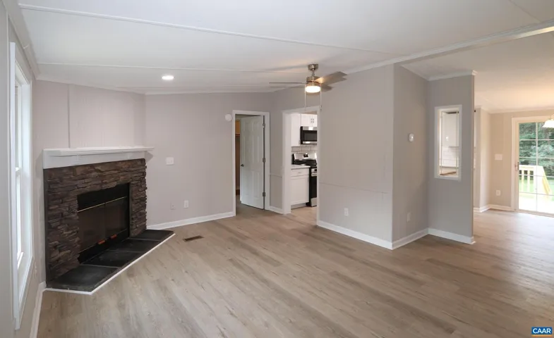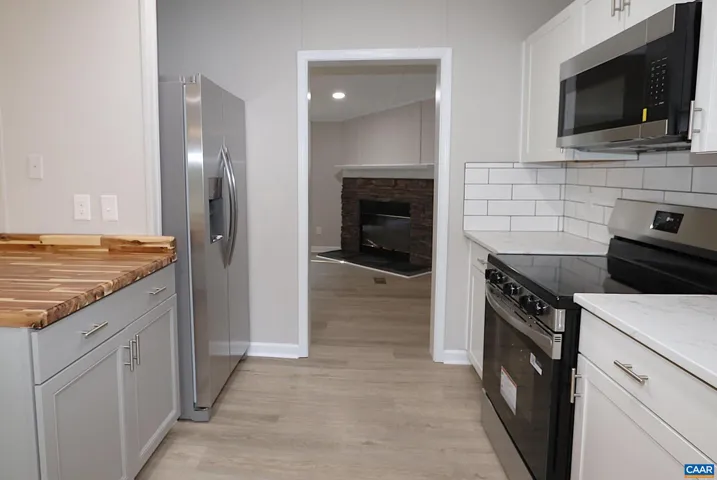 PRICE REDUCED to $334,900! CHARMING RENOVATED 3 BR/2 Bath COUNTRY HOME w/Large 2-CAR Detached GARAGE w/Work Bench & Pull-down Stairs to Attic Storage and Garden Shed on 5.67 PRIVATE Acs. Just 5 miles to Shannon Hill I-64 Exit! Conveniently Located between Charlottesville & Richmond. MOVE-IN READY, IT’S A GEM! SPLIT BEDROOM DESIGN. NEW wide plank LVP Flooring throughout, NEW Kitchen Appliances (Refrigerator, Stove, Microwave & Dishwasher). NEW Kitchen & Bathroom Cabinets, Countertops, Commodes & Add’l Lighting. NEW HVAC/Heat Pump/Compressor includes UV Air Purifier Light. LOVELY Woodburning/Stone Surround Fireplace. NEW Lighted CEILING FANS, NEW double hung Vinyl Windows & Blinds, FRESHLY Painted & PROFESSIONALLY Cleaned. NEW spacious front & back DECKS. House & Garage POWERWASHED. SEPTIC SYSTEM NEWLY Inspected & Serviced: Tank Pumped. Tank, Distribution Box & Drain Field JET HYDRO-WASHED. NO HOA! Domestic Pets & Farm Critters Welcome… PUBLIC OPEN HOUSE Sun Oct 12 from 1-3 pm. Come See!,Formica Counter,White Cabinets,Fireplace in Living Room
