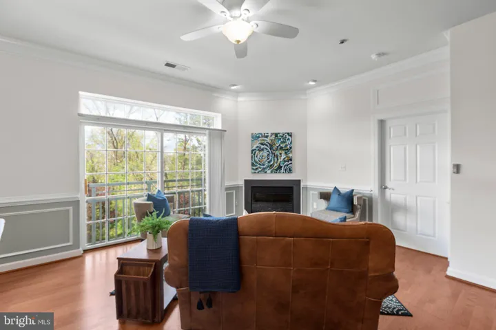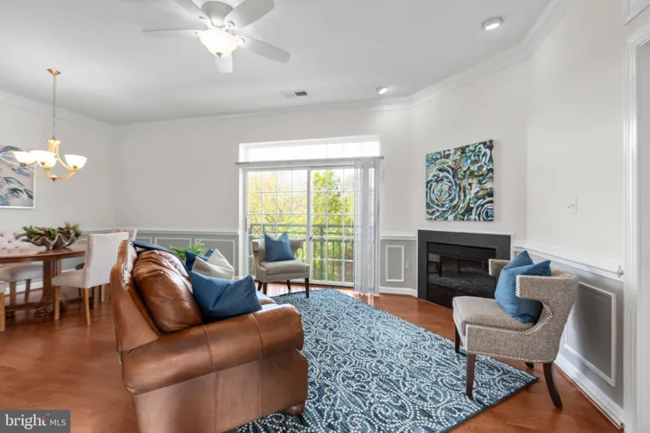 Welcome to this beautifully maintained condo that blends spacious living with timeless details. At the heart of the home is a huge kitchen designed to impress—featuring rich wood cabinetry, sleek Corian countertops, stainless steel appliances, a cooktop, and plenty of space to prep, serve, and gather. The open-concept dining and living area is warm and inviting, highlighted by a cozy fireplace and refined finishes like crown molding, chair rail, and shadowbox trim that add character and charm. Take a step up to the raised flex space, perfect for a work space or craft area. Retreat to the generously sized primary suite with walk in closet and its own ensuite bathroom, offering dual vanity sinks, a separate walk-in shower, and a luxurious corner soaking tub. Additional conveniences include an in-unit washer and dryer and assigned parking spot in the covered garage. Seller will pay 6 months of condo dues at settlement. Community amenities include an outdoor pool, walking paths, planned events and tennis courts. Close to the VRE, commuter lots, Rt. 1 and I-95! Don’t miss your opportunity to own this beautiful condo!