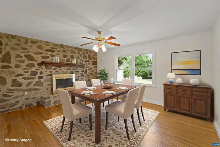 1% mortgage rate buydown for your first year offered by Gray Fox Mortgage! Now you can virtually stage it on Zillow! Major updates provide peace of mind: new roof & French drain (2024), exterior paint (2023), dishwasher (2025), new well (2020), HVAC (2017), windows (2005), plus partial generator. This beautifully maintained 4BR/3BA brick ranch in Earlysville Heights is just minutes to the airport, Hollymead Town Center, Ivy Creek trails, NGIC, and 15 minutes to Charlottesville. Light-filled and move-in ready, it features hardwood floors, spacious living and dining with fireplace, and three bedrooms on the main level. The terrace level offers a large rec room with wood stove, full bath, and versatile 4th bedroom/office. With 0.6 acres, no HOA, and a quiet established community, this is a rare Earlysville gem. 2025 Tax Assessment is $409,200.,Wood Cabinets,Fireplace in Dining Room,Fireplace in Rec Room