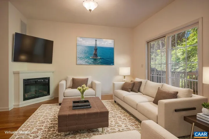 Fresh and bright 4-bedroom townhome with an unbeatable location. Just a short drive or easy bike ride from UVA and downtown, with convenient access to I-64, and within walking distance to a city bus line stop and the local elementary school as well as 5th Street Station, home to Wegmans, various retail stores and restaurants, and the Alamo Cinema Drafthouse. This home is completely ready for its next owner, featuring hardwood floors throughout the main level, newly replaced carpet in all bedrooms, and fresh paint throughout. The inviting family room, complete with a gas fireplace and access to one of two rear decks, is perfectly situated adjacent to the kitchen, making it ideal for gatherings. The main level also includes a dining room, a convenient half bath, and a spacious living room that opens to a front porch. Upstairs, you’ll find two bedrooms, a full bath, and a stackable full-sized laundry. The primary suite, also on this level, boasts lovely morning light, a full bath, and a walk-in closet. The fourth bedroom on the lowest level allows for versatile options and is currently used as a bonus room, with a nearby half bath and access to the lower deck. Never worry about parking with your own private driveway and garage.,Formica Counter,Wood Cabinets