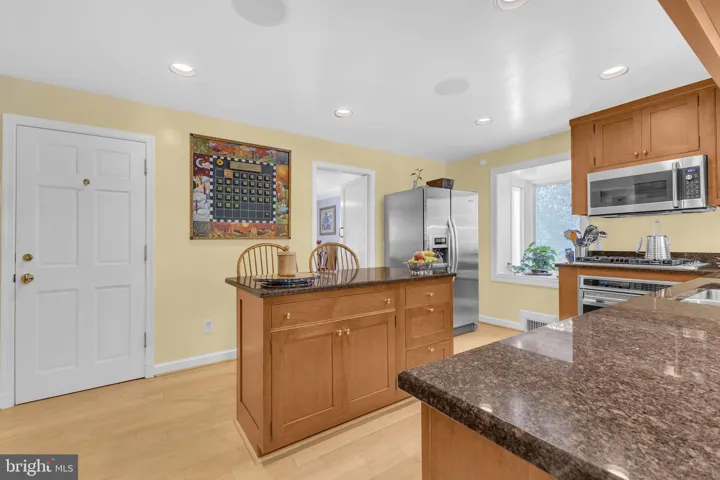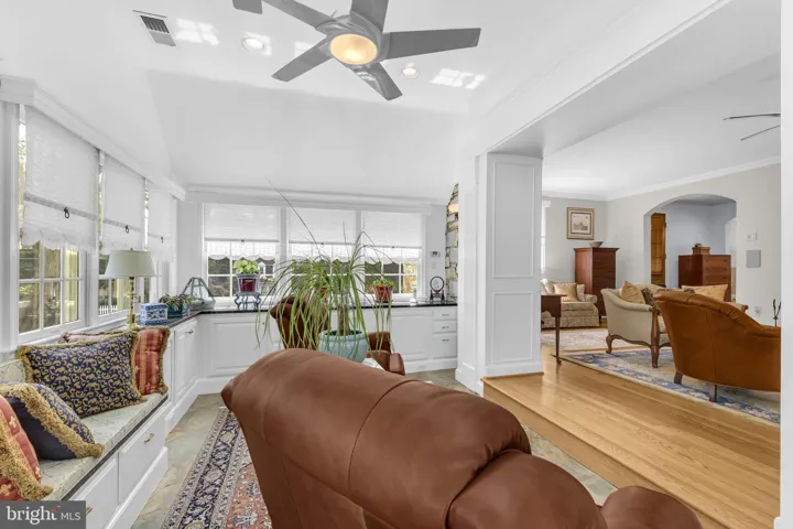 The kitchen is a chef’s delight, complete with a gas cooktop, granite countertops, high-end appliances, and a suite of thoughtful additions including a microwave with convection and air fryer capabilities, plus two refrigerators—one upstairs and a second storage fridge downstairs. Surround sound enhances the first floor, with M&K ceiling and wall speakers in the sunroom, dining room, and living room, and Speaker Craft ceiling speakers in the kitchen.