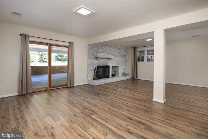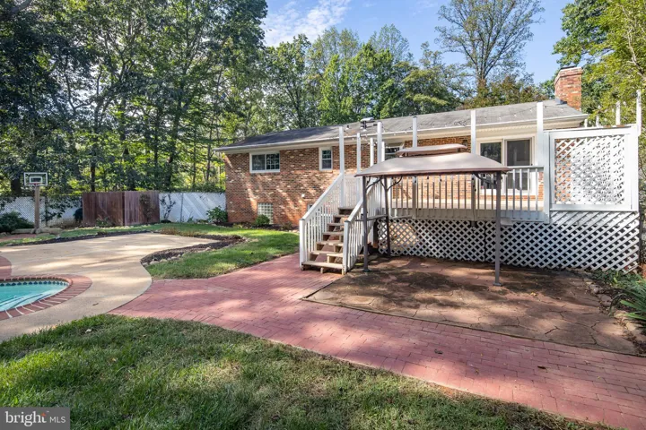 The tastefully remodeled kitchen and bathrooms add a contemporary touch, while the spacious lower-level recreation room with a brick hearth and fireplace provides a cozy retreat. Sliding glass doors lead to a deck that overlooks the custom in-ground Gunite pool, making it an ideal home for entertaining and outdoor living.