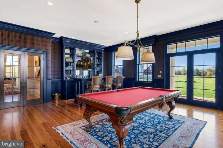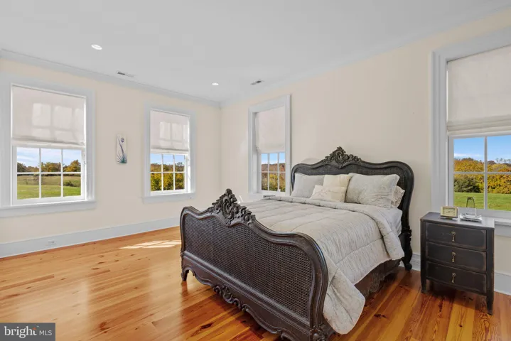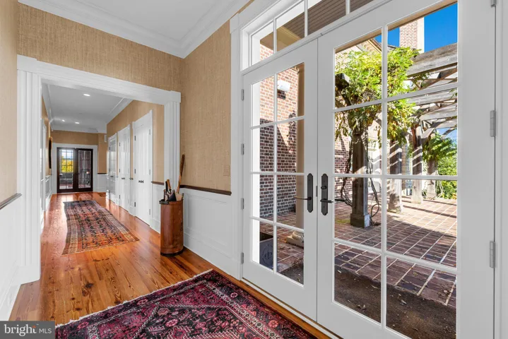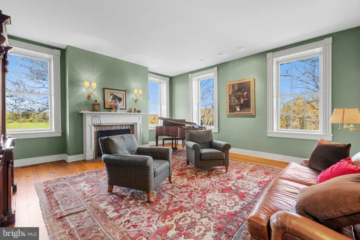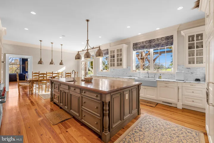 The masterpiece 67-acre estate of Limestone Farm features a stately federal style manor house, with origins dating to the 1790’s. Meticulously and completely renovated and expanded in 2010, the manor house has now over 11,000 square feet of elegant living space. Throughout the construction, tremendous attention was given to preserve the homes’ history while making the expansion seamless. As one ascends the front steps, one notices the front porch ceiling which showcases the hand painted crest of the family who built the original home. One then enters the foyer with its beautiful heart pine flooring, mahogany newel post, handrail, and staircase in its original detail, and fully restored with great attention given to its structural integrity. Many of the details of the foyer were carried through to the new and gracious back hallway with its grand heart pine staircase. This hallway separates the kitchen from the great room and creates a wonderful entertainment flow. To enhance the seamlessness of the old to the new, reclaimed heart pine flooring was installed throughout the main and upper levels. Built of local limestone and handmade oversized brick, the roof is of extra premium cedar shake shingles imported from Canada.