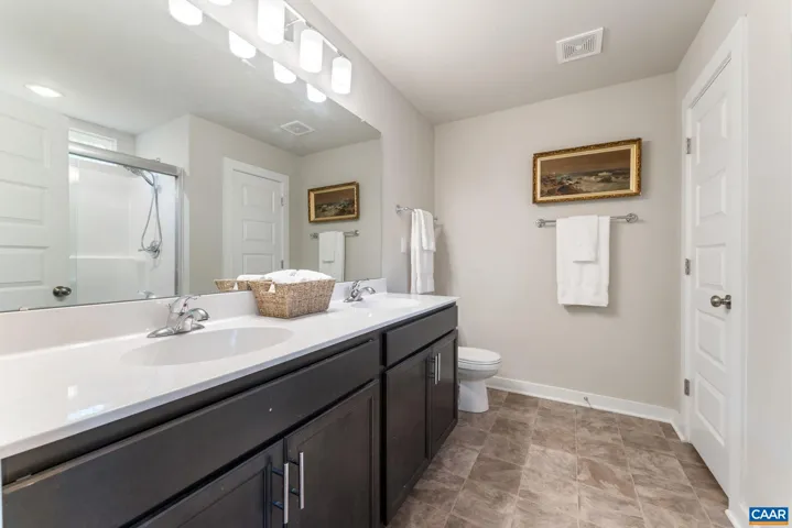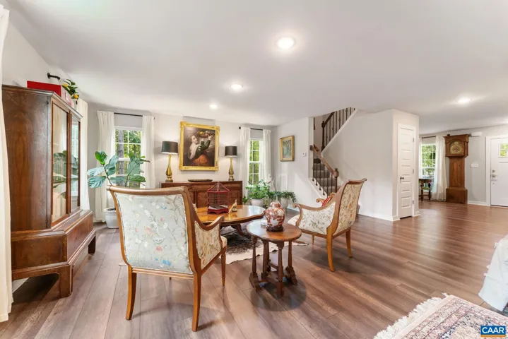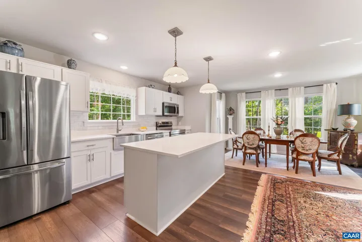 This modern Craftsman-style home, built in 2023, offers elegant living with 4 bedrooms and 2.5 baths on 1.5 private acres surrounded by mature trees. A covered front porch with prefinished wood columns and a Craftsman-style door sets the welcoming tone. Inside, a bright open floor plan flows into spacious living and dining areas with French doors opening to a rear deck and outdoor fire pit?perfect for relaxing or entertaining. The gourmet kitchen features Tier 2 cabinets, quartz countertops, farmhouse sink, French pendant lighting, stainless steel appliances, and a mudroom off the side-load garage. Engineered wood floors span the main level, enhanced by upgraded interior doors and custom dining room trim. The main suite includes a luxurious 5′ fiberglass shower with transom window. Extras include pull-down attic storage, LED lighting, and wiring for cable and Firefly fiber broadband. A well and septic system reduce utility costs, while the walkable Forest View community offers easy access to I-64 and Rt. 250. Combining privacy, upgrades, and convenience, this like-new home is a perfect modern retreat.