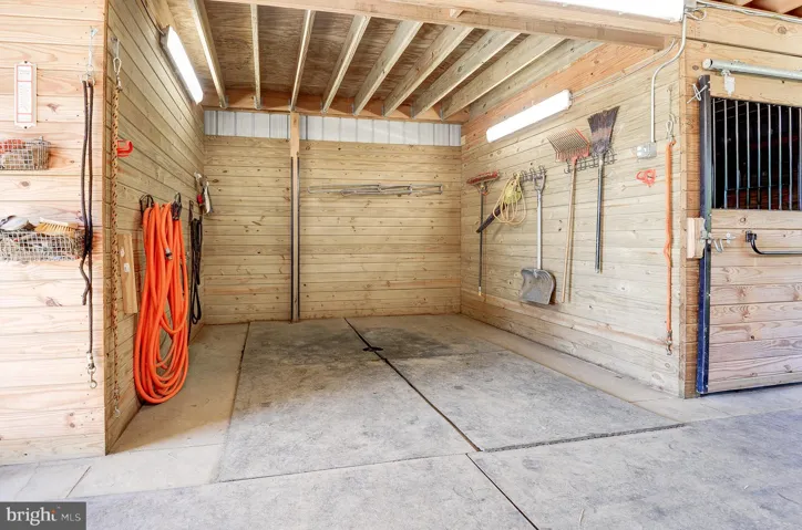 The equestrian amenities are thoughtfully designed and highly functional. The Amish-built 4-stall barn features four 10 x 12 stalls with a center aisle that allows excellent ventilation, keeping the barn cool in summer, while the sturdy construction maintains warmth in winter. The barn includes a wash and grooming stall, a heated tack room, and interior stairs to the hayloft that holds 400 square hay bales and room for extra storage. An 80 x 120 sand and bluestone riding ring is just steps from the barn, ideal for daily training. The property has four fenced paddocks for turnout. An expansive rear field allows for galloping and cross-country schooling without leaving the property or future additional turn out. Additional structures include a large run-in shed and a tractor shed. There is excellent room for horse trailer parking and easy access for your farrier and vet.