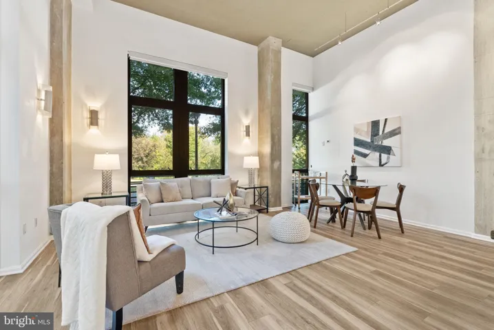Unit 106 turns ordinary condo living into an extraordinary experience. Floor-to-ceiling windows with automated blinds fill the space with light while giving you control at the touch of a remote. The open-concept living area, accentuated by 14-foot industrial-style ceilings, creates a sense of spaciousness and flow.