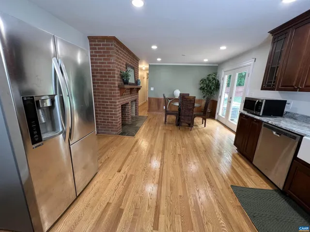 Desirable and modern Northfields property on a great private lot. Spectacular oak hardwood floors recently refinished and look stunning! Updated and modern full bathrooms on main level with first level primary/owner suite. Large open living room and dining room that open to a beautiful covered screen porch with ceiling fans. Large eat in kitchen with fireplace and private views of the back yard. Cherry cabinets, granite counter tops and stainless steel appliances with option space and connection for washer/dryer. Basement apartment features separate entry, bedroom and full kitchen. Full bathroom and large home office or recreation/flex space in basement as well. Easy access walk up attic. Over 900sf of unfinished space for storage. Oversized attached garage with workshop space. Large backyard is fenced and private. Large shed and whole house generator on the property as well.,Cherry Cabinets,Granite Counter,Fireplace in Basement,Fireplace in Kitchen