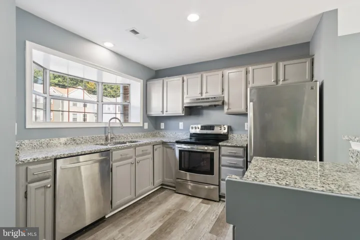 Explore your ideal home in this beautifully maintained three-level condo, featuring three spacious bedrooms and 2.5 stylish baths. The heart of the home is the updated galley-style kitchen, showcasing sleek gray cabinets, premium stainless steel appliances, and elegant granite countertops.