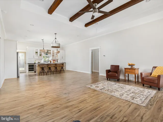 Double front doors with privacy glass enters into the Living Room with Tray ceiling, custom beams and a ceiling fan with remote. You will appreciate the 10ft ceilings! Enjoy the open concept living with beautiful laminate flooring throughout! Both Bathrooms are tiled. There is NO carpet. The Kitchen is custom created and detailed oriented for your every need. Stainless Appliances (downdraft Kitchen Aid stove in island), Quartz Countertops, Backsplash, Island with available seating, Custom upgraded cabinets with soft closed drawers, appliance garage, spice cabinets, & a special cabinet just for your mixer! Under Counter and In-Counter special lighting.