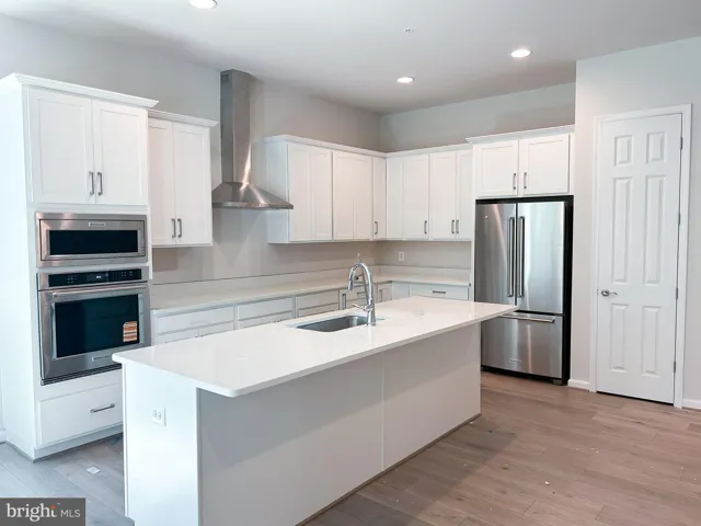 he main level boasts high ceilings, luxury vinyl plank hardwood flooring, and is an open concept design with the kitchen open to the dining room and light-filled family room which boasts a modern electric fireplace. The kitchen is a chef’s dream featuring a spacious island, and gourmet stainless steel appliances, Carrara Morro quartz countertops, and sleek white cabinets with brushed nickel hardware. Located off the great room is a rear screened porch, to enjoy outdoor living and entertaining year-round.
