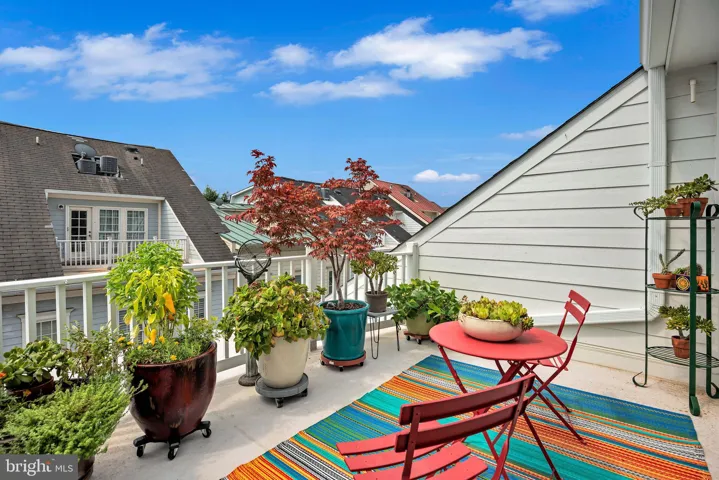 The top floor features an expansive loft, perfect as a secondary living area, media space, or guest retreat. It includes a wet bar with custom cabinetry, undermount lighting, a wine rack, and a spacious closet. From here, step out onto the private rooftop terrace with a newly installed handrail (2025), ideal for enjoying morning coffee, relaxing, or entertaining. Additional storage can be found in the utility closet behind the eaves perfect for luggage or seasonal décor. The attic includes flooring and lighting for even more accessible storage options.
