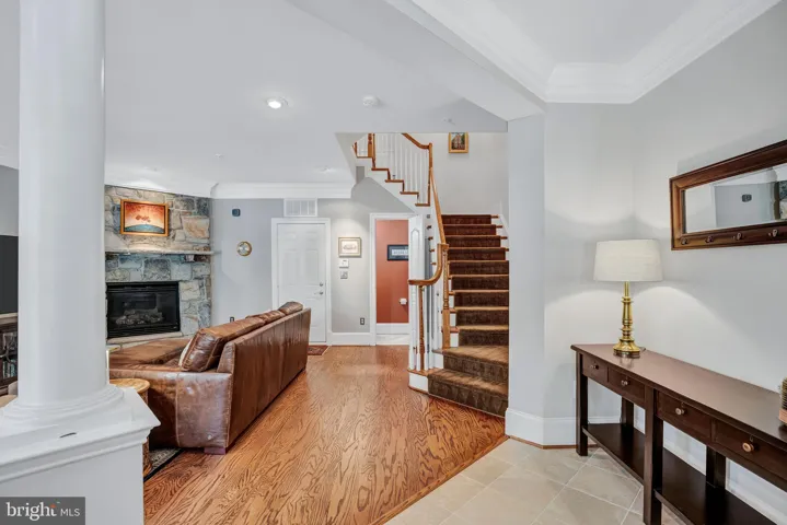 Boasting over $76,000 in thoughtful upgrades and offering over 3,700 square feet of refined living space, this exquisite all brick end unit townhome is flooded with natural light from windows on three sides. A gracious open foyer sets the tone, featuring diagonally laid tile flooring and a spacious double-door hall closet. Rich hardwood floors span the entry and main levels, enhancing the home’s elegant flow.