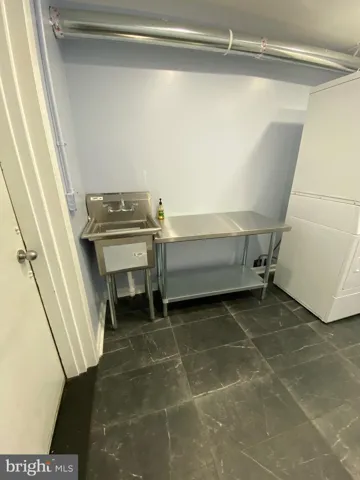 Laundry and extra large storage space in common area one level down.