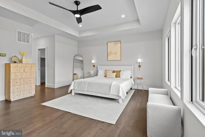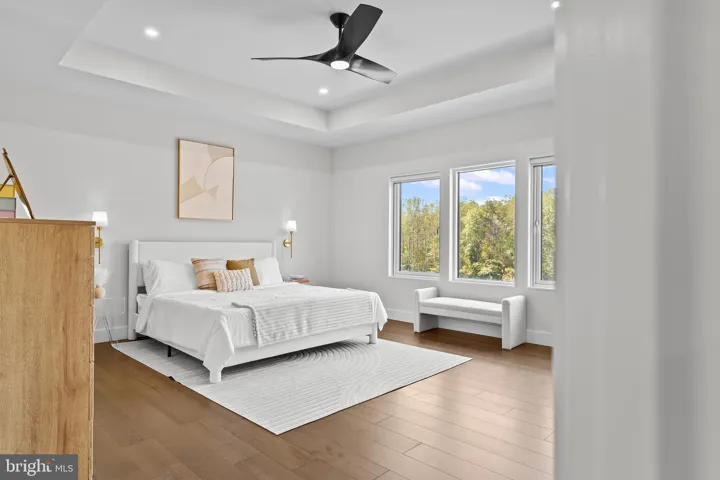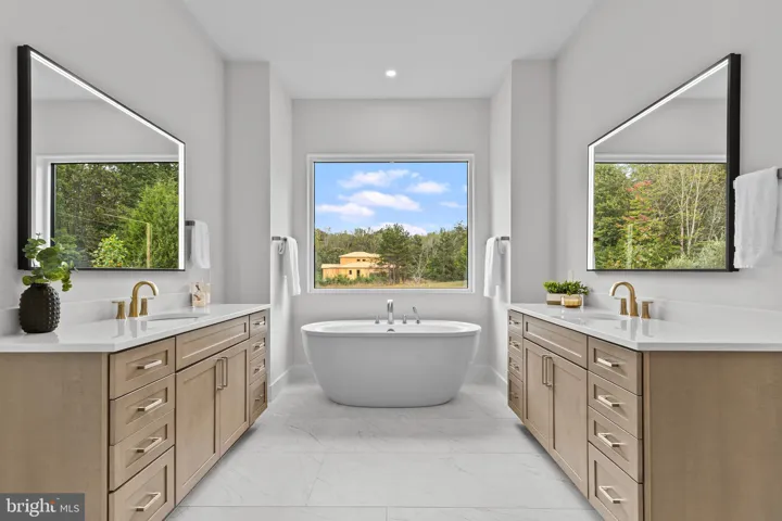 The heart of the home is the designer kitchen, featuring sleek quartz countertops, premium Dacor appliances, and ample storage, making it perfect for entertaining or creating gourmet meals. The first-floor Primary Bedroom offers a private retreat with a spacious walk-in closet, a luxurious ensuite bathroom with a soaking tub, and a walk-in shower. A second Primary Bedroom awaits on the upper level, complete with his and her closets, an ensuite soaking tub, and a walk-in shower – ideal for extended family or guests. Each of the secondary bedrooms offers over 225 square feet of space, providing flexibility for your lifestyle.