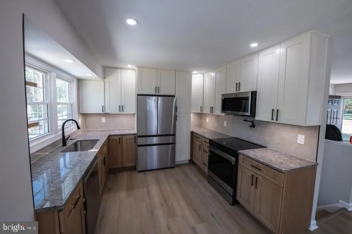 A MUST SEE*** Beautiful fully renovated home in the peaceful Manchester Village community; featuring 5 bedrooms and 3 full bathrooms with new paint, luxury vinyl plank and upgrades throughout. Upon arrival you notice the attention to detail in the new landscaping, roof, windows and exterior lighting. The home also boast open concept living with an open stair well and open gourmet kitchen with new smart stainless steel appliances, custom cabinetry, a large pantry, open shelving, a pot filler and recess lighting all leading to a new sliding glass door onto a huge new deck for easy outdoor entertaining. The living/dining areas include a bay window, wood feature walls, beautiful new hanging and recessed lighting. Plus a dry bar for additional storage and opening shelving. All bedrooms have large closets for good storge and large windows for plenty of natural daylight, plus recess/ fan evening lighting. The hallway bathroom features a hanging vanity, new lighting, tub/shower combo surrounded in beautiful ceramic tile. The main bedroom has a large closet and the new en suite featuring a walk in shower with floor to ceiling tile, a gorgeous glass surround, new vanity, lighting and open shelving. The basement includes 2 new spacious bedrooms with large closets and windows, a recreation room with a feature wet bar with a mini refrigerator, tile wall, granite counters and wall sconces. A large beautiful new full bathroom with tub/shower combo highlighted with floor to ceiling tile, new lighting, vanity and spacious new laundry room. Plus outdoor access to the newly painted patio which includes new lighting and a new built in grill. Additional storage available in the large outdoor shed in the fully fenced backyard. Home is within walking distance to Marc train, however, far enough not to hear it.
