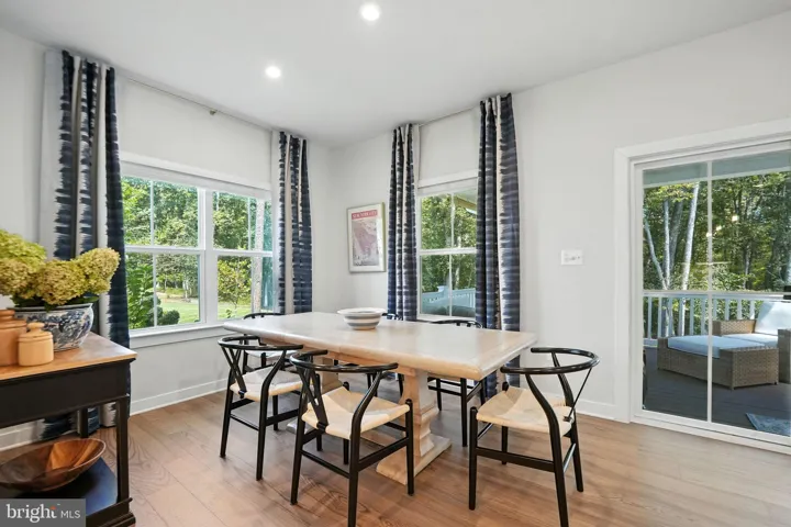 Beautiful landscaping and hardscaping elements enhance the curb appeal while adding charm and natural beauty to the property. Flowering trees and shrubs line the driveway and adorn the front yard. Flagstone steps bordered by gorgeous Limelight Hydrangeas lead from the driveway down to the backyard. Offering an idyllic space for extended outdoor living and entertaining, an amazing new flagstone patio, complete with bench seating and space for a fire pit is the highlight of the backyard sanctuary. The wooded conservation area abutting the property provides privacy while lounging, dining alfresco, and taking in the sights and sounds of nature.
