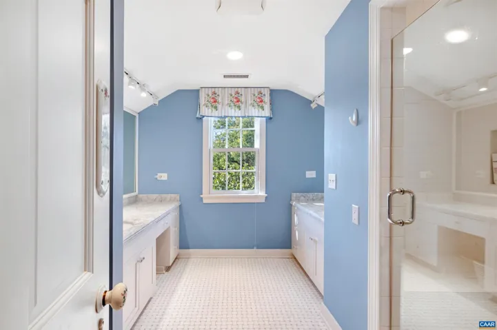 Light-filled home with spectacular views of the UVA Golf Course and Ragged Mountains. The open-concept floor plan includes a first-floor primary suite, spacious eat-in kitchen, library, custom Gaston & Wyatt millwork, built-ins, and a sunroom designed to capture natural light throughout the day. Additional features include hardwood floors throughout, a whole-house generator, one-car garage, and a large back patio overlooking the golf course. The level backyard is ideal for entertaining, while the home?s location offers unmatched convenience. Just moments from Boar?s Head Sports Club, UVA, Downtown, and all Charlottesville has to offer.,Glass Front Cabinets,Marble Counter,White Cabinets,Fireplace in Den,Fireplace in Living Room