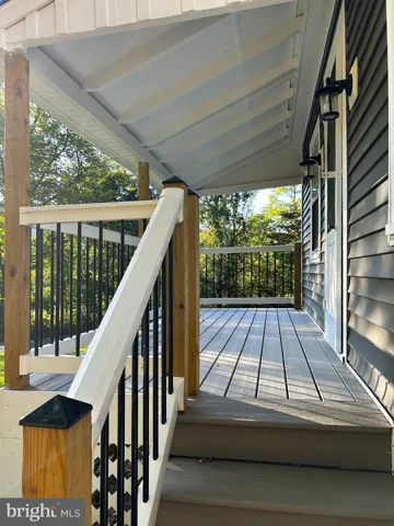 Major renovation 2025 to include: New roof with architectural 30 yr shingles, all new vinyl siding, new front porch with Trex decking and no maintenance decorative front porch balusters and railings, new HVAC, complete full Bath remodel with edgeless glass shower door, all new light fixtures, all new electrical outlets, down to the studs Kitchen remodel to include new insulation, new drywall, new marble counter tops, new cabinets with soft close hinges, all new appliances, LVP engineered wood  flooring and vapor barrier installed under kitchen. All interior original wood floors refurbished. New rear Trex deck with random width stone accent area and privacy lattice, newly graded driveway, new mulch beds, and new landscaping. New entrance doors, new lighting and new paint for the separate entrance Cellar with existing hook-ups for clothes washer and dryer; and additional storage space.