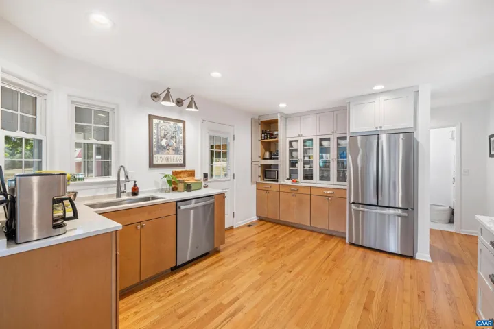 Welcome to this beautifully remodeled home in the heart of Waynesboro! Situated on a spacious .4-acre corner lot, this property blends modern updates, timeless finishes, and a convenient location less than 1.5 miles from I-64. Inside, you?ll find an open floor plan with refinished wood floors, custom shades, fresh paint, and abundant natural light. The chef?s kitchen is a true highlight with quartz and Italian marble countertops, new cabinetry with soft-close doors and dovetail joinery, a walk-in pantry, a hidden microwave cabinet, a stainless sink with pull-down faucet, and top-of-the-line appliances, including a Frigidaire induction cooktop, a GE wall oven, a dishwasher, and a French-door refrigerator. The main-level primary suite offers a walk-in closet and spa-like bath with a double vanity, a walk-in shower, and a separate water closet. Other features include new HVAC, electric fireplace, built-in shelving, finished laundry, and a huge unfinished basement with exterior entry. Completing the home are a two-car garage, carport, whole-house generator, screened porch, and beautifully refreshed landscaping?move-in ready and designed for modern Shenandoah Valley living. This renovated Cape Cod won’t last long. Come see it today.,Glass Front Cabinets,Marble Counter,Quartz Counter,Wood Cabinets,Fireplace in Living Room