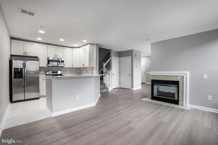 Main level has a specious living room with beautiful three sided Gas Fireplace and new Luxury Vinyl Plank