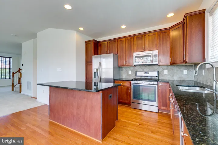 Step inside to an open, light-filled main level—a wonderful perk of being an end unit. The gourmet kitchen boasts stainless steel appliances, gas cooking, a large center island, abundant cabinetry, and an eat-in breakfast area that flows seamlessly to the back deck. A formal dining room connects to the spacious living area, creating the perfect setup for both everyday living and entertaining.