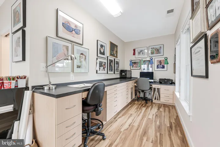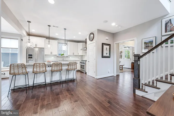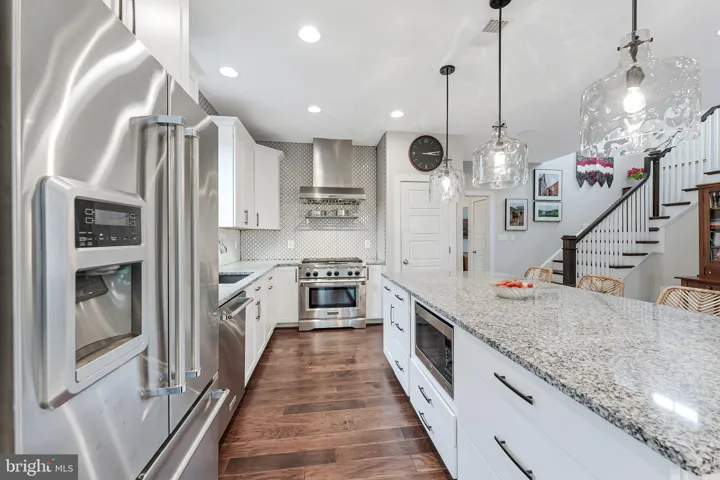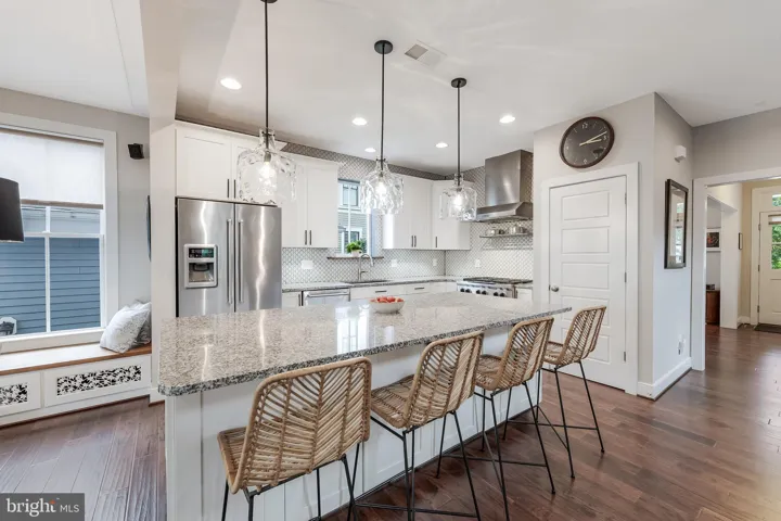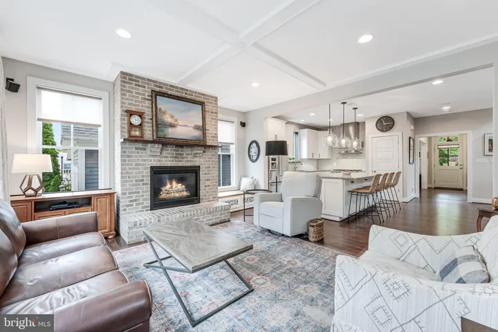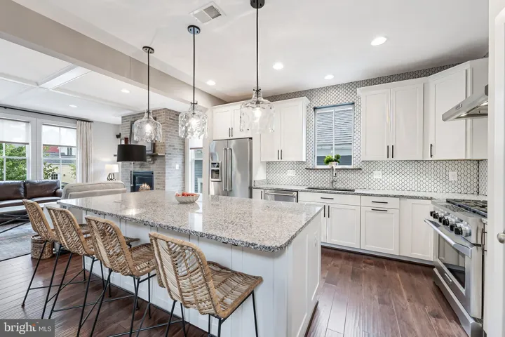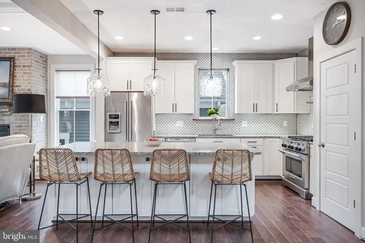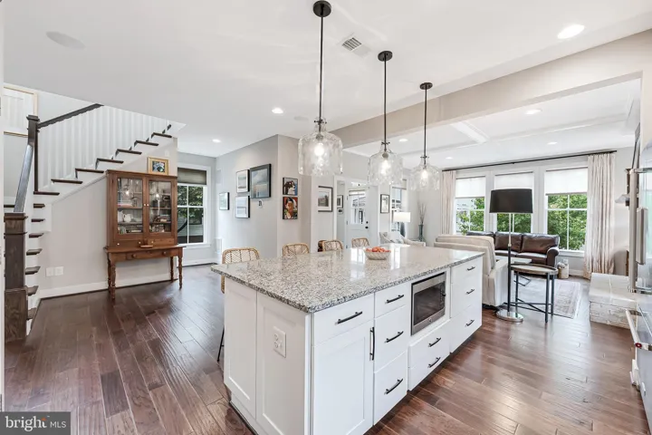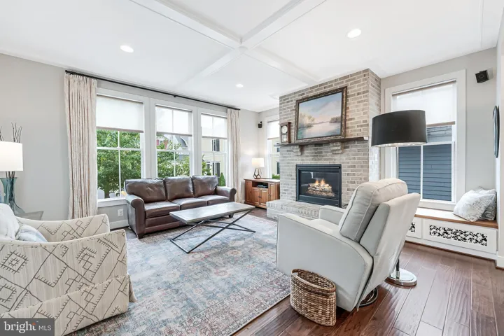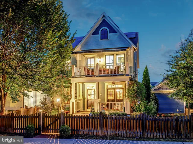Welcome to 802 Vine Street, an Evergreene-built Keswick model in the heart of Downtown Herndon, offering over 3,200 square feet of beautifully appointed living space across three finished levels. This 4BR/3.5BA Craftsman-style home blends charm and convenience with modern upgrades, including a gourmet chef’s kitchen with a 9’ granite island, KitchenAid stainless steel appliances—counter-depth refrigerator with in-door ice and water, ultra-quiet dishwasher, and six-burner gas range with warming rack and vent hood—refinished cabinets (2025), updated lighting (2025), and open flow to the coffered-ceiling family room with gas fireplace. The main level also features wide-plank hardwoods, oak stairs, crown moldings, a formal dining room with decorative drapes, and a bright living/reading room, plus a mudroom with custom cabinetry and lighted display uppers. Upstairs, find three spacious bedrooms including a primary suite with spa bath (soaking tub, large shower, dual vanities) and a secondary bath with dual vanities as well. The fourth bedroom has been customized as an artist studio/office with built-ins, opening to a private porch with retractable awning overlooking Vine Street (easily converted back to a bedroom with walk-in closet). The finished lower level boasts a dedicated library/office, rec room, full bath, storage with shelving, and media room potential. Thoughtful upgrades include new carpet (2025), motorized blinds in the family room, PVC porch railings, remodeled laundry with sink and cabinets, custom hardscape creating a second parking space and walkways, and a fully fenced picket-lined front and side yard. Enjoy four porches including a Southern-style front porch with ceiling fan. Energy efficiency shines with 2022 solar panels producing nearly double the home’s electric use (generating monthly energy credits) and a Level 2 EV charger in the detached garage. The Vinehaven HOA ($158/mo) handles lawn care, snow removal, and even offers raised-bed garden plots. Just steps to Herndon’s restaurants, bars (Aslin, Izzy’s), coffee shops, library, Arts Herndon, W&OD Trail, Friday Night Live concerts, and the Community Center with indoor pool, pickleball, fitness, and events—plus a quick circulator ride to the new Silver Line Metro and just 5 miles to Dulles. 802 Vine Street delivers modern comfort, energy-smart living, and the unbeatable walkable lifestyle of Downtown Herndon.