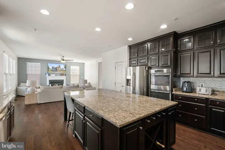 The main level greets you with a gracious foyer, formal dining room, and private home office with custom built-ins. At the heart of the home, the gourmet chef’s kitchen features stunning granite countertops, custom tile backsplash, 46” cabinetry, stainless steel appliances, double ovens, gas cooktop, built-in wine storage, and a massive island with seating for six. The kitchen opens to a spacious, light filled family room anchored by a cozy gas fireplace and recessed lighting, with seamless access to the Trex deck for effortless entertaining.