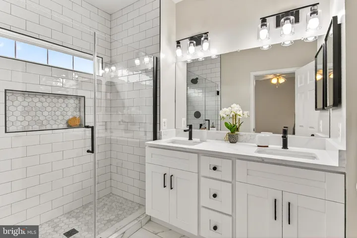 Fantastic, fully remodeled brick front townhome with three finished levels and garage! This home has been beautifully updated from top to bottom, featuring a brand-new kitchen with 42″ white cabinets, beautiful quartz countertops, and new stainless-steel appliances, fresh paint, new carpet, gleaming hardwoods on the main level, chic new lighting, fixtures and hardware, and a fully remodeled full bath with custom tile, comfort-height dual sink vanity, and upgraded finishes. The entry level offers a one-car garage, a large light-filled rec room with walkout access to the fenced backyard with a patio deck, and a full bath – ideal for guests or a private home office. The main level boasts warm hardwood floors that flow into the updated kitchen with breakfast bar and a bright and open family room with a cozy gas fireplace and a sliding glass door leading to the rear deck—perfect for grilling or entertaining. A formal living and dining room featuring a wall of windows, chair rail and crown molding, and a stylish half bath complete this level. Upstairs, the primary suite is your own private retreat boasting plush new carpeting, a lighted ceiling fan, walk-in closet, and a luxurious newly remodeled bath an upgraded comfort height dual sink vanity with quartz countertop, stylish fixtures, and a frameless glass enclosed shower with custom designer tile. Two additional bedrooms, each with new carpeting, share access to the well-appointed hall bath. Located in desirable Braemar, close to schools, shopping, and major commuter routes, plus within walking distance to the pool! Residents enjoy multiple outdoor pools, tennis and basketball courts, playgrounds, walking trails, a clubhouse, and community events that make Braemar one of Northern Virginia’s most sought-after neighborhoods. For a home built with thoughtful design, stylish designer upgrades, and enduring quality in a spectacular location it awaits you here!