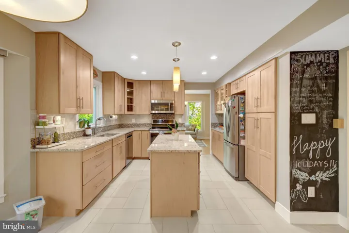 The kitchen and all bathrooms have been remodeled and updated. Remodeled kitchen offers maple cabinets and granite counter top, kitchen island, energy saving induction range, & stainless steel appliances. The open layout between kitchen and family room allows space and design to interact with family & friends while cooking or entertaining.
