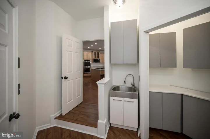 Additional highlights: updated light fixtures, crown and chair rail moldings, main-level laundry room with ample cabinetry and utility sink, and community amenities such as a pool, clubhouse, and common areas.